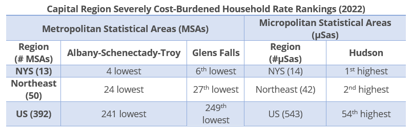 Albany Metro Has NY’s 4th Lowest Percentage of Severely Cost-Burdened Households