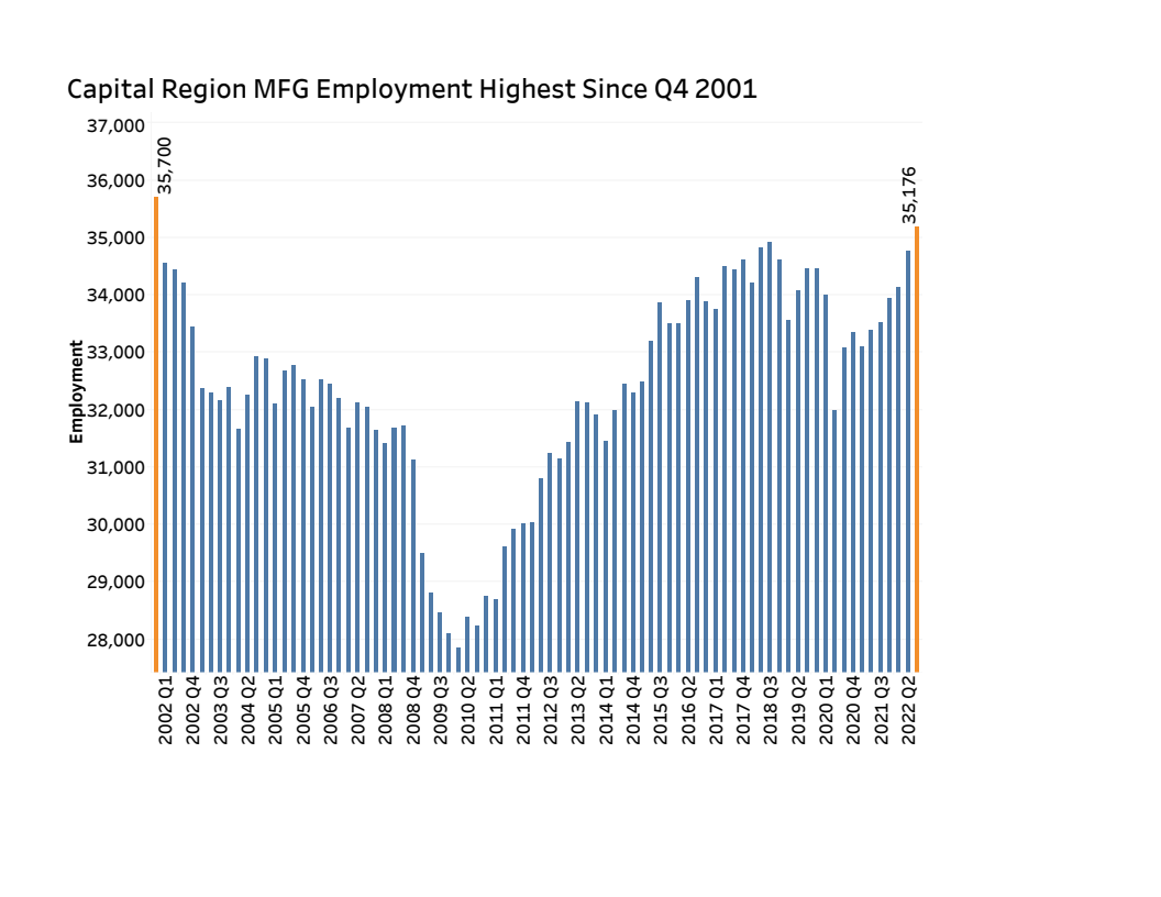 Capital Region MFG Employment Highest Since 2001