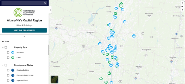 CEG has launched a new interactive database for Albany/NY’s Capital Region Sites & Buildings. The database, called ReadySites Albany/Capital Region, highlights available industrial sites and buildings throughout the Capital Region, providing a key resource for companies looking to locate or expand across the region’s eight-county footprint.