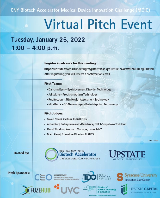 Sponsored by: Innovation Law Center, CenterState CEO, FuzeHub, TDO, Empire State Development, Upstate Venture Connect, Upstate Capital Association of New York