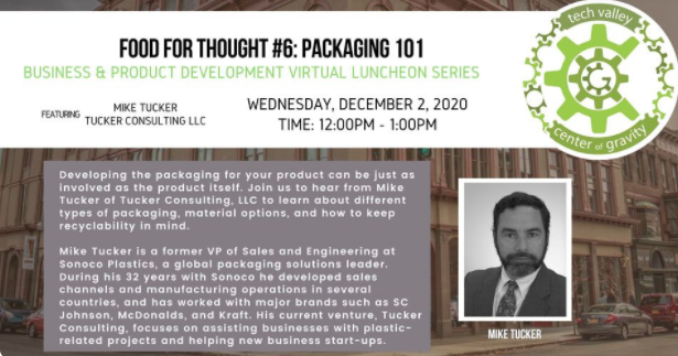 The Manufacturing Incubator at Tech Valley Center of Gravity presents Food for Thought # 6: Packaging 101 with Tucker Consulting, LLC.