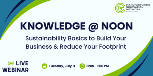 In this Knowledge @ Noon monthly series the Manufacturing Innovation Network provides a great opportunity to learn why a sustainability vision is important, how to get started and resources to assist with the journey. Hear from the experts at the Pollution Prevention Institute and how a local manufacturer, ClearView Packaging, is making the transition.