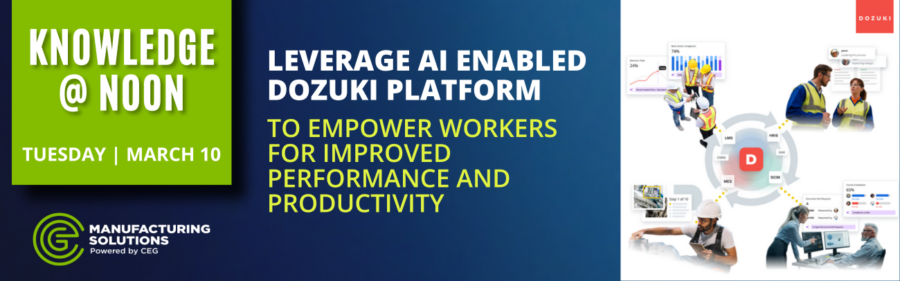Join us for this free Knowledge @ Noon webinar and learn how the AI-enabled Dozuki platform is helping manufacturers empower frontline teams for stronger performance and greater productivity. Designed for manufacturing organizations of all sizes, Dozuki bridges the gap between frontline operations and existing manufacturing systems—driving real efficiency gains where it matters most. How