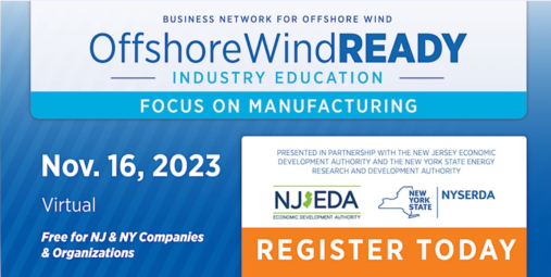 This registration is for the Offshore Wind Ready: Manufacturing educational program taking place virtually in Zoom on Thursday, November 16 from 10 a.m. to 4 p.m. EST. After you register, you will receive an email that contains complete information about the program. This Offshore Wind Ready training, hosted by the Business Network for